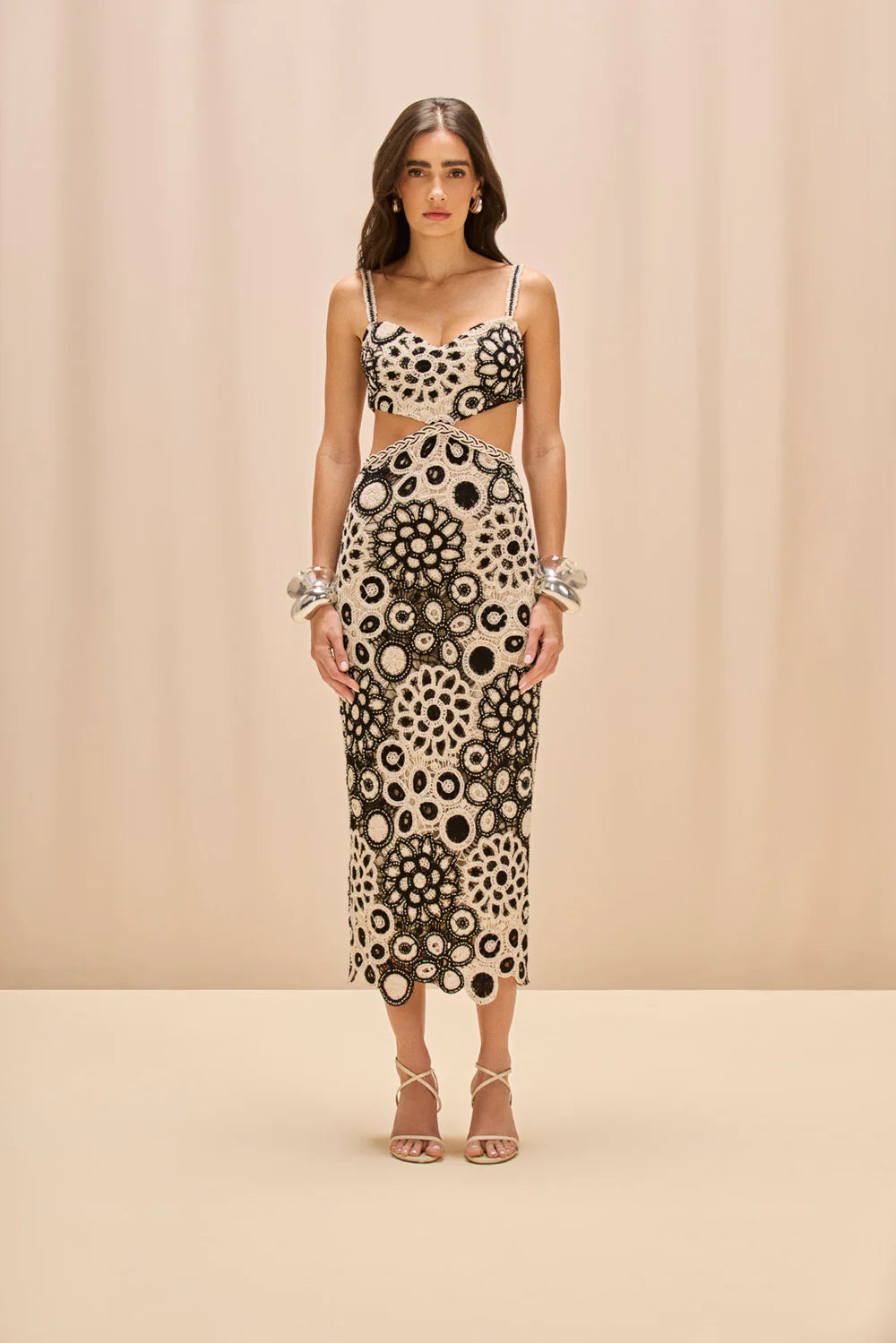 CORAL CROCHET MIDI DRESS