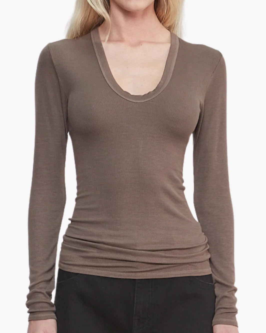SILK RIB U-NECK IN MUSHROOM